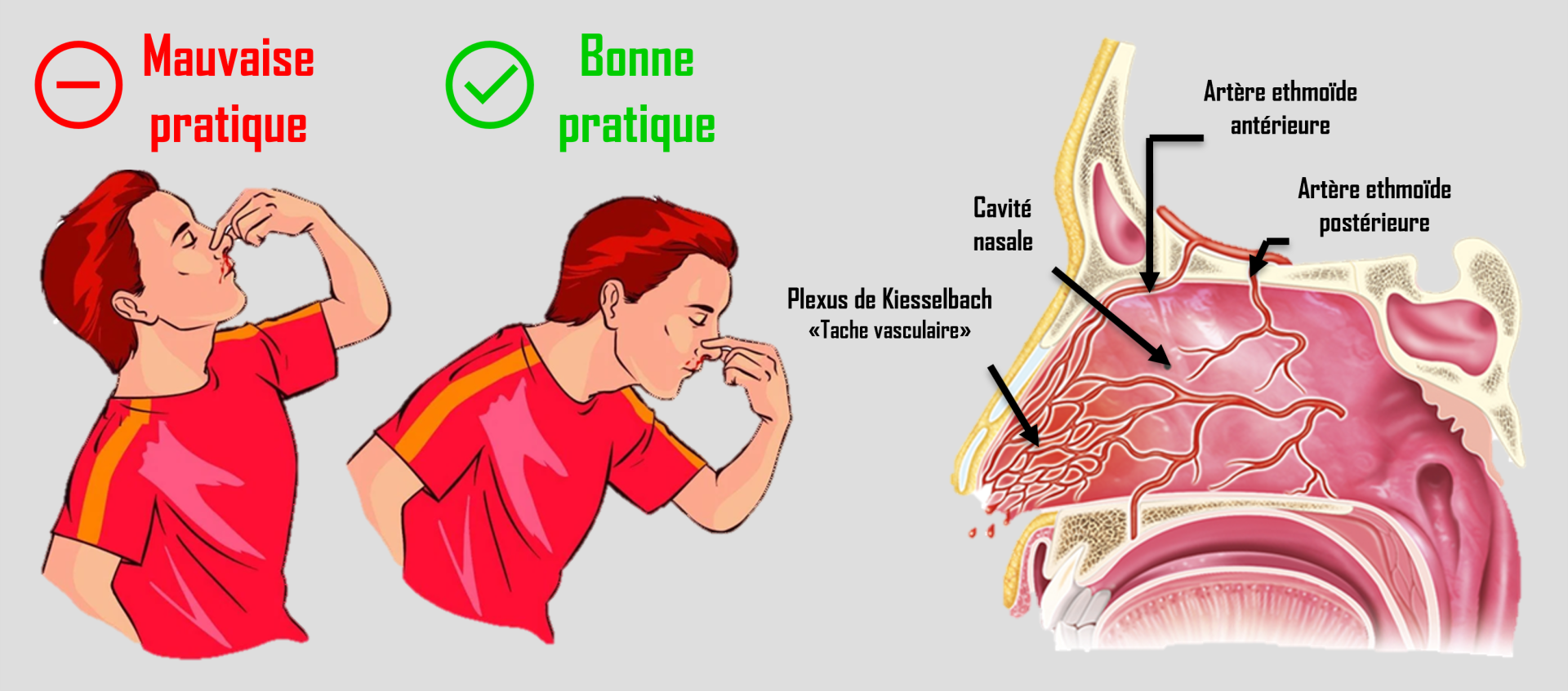 La première mesure consiste généralement en la compression locale des fosses nasales après un premier mouchage.
